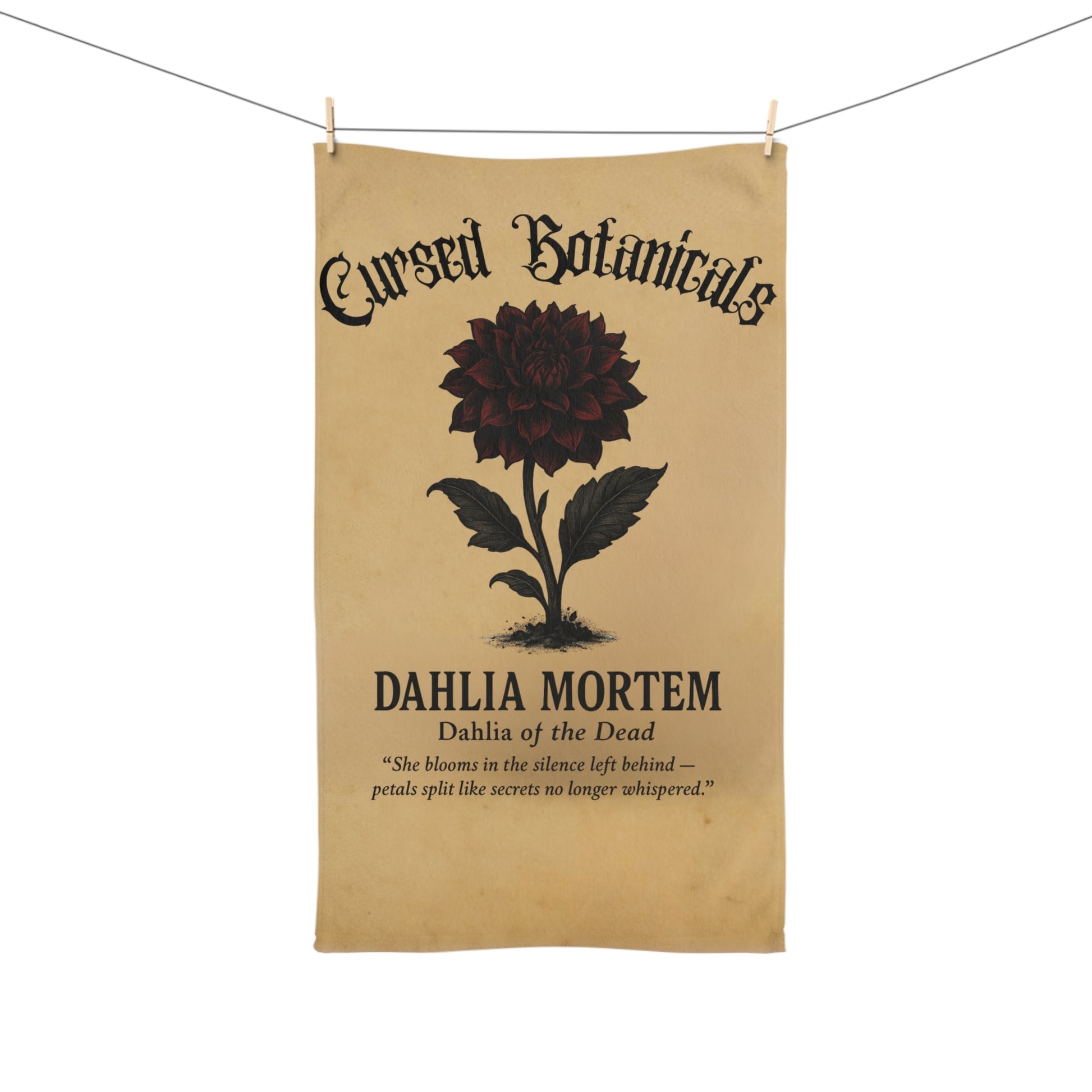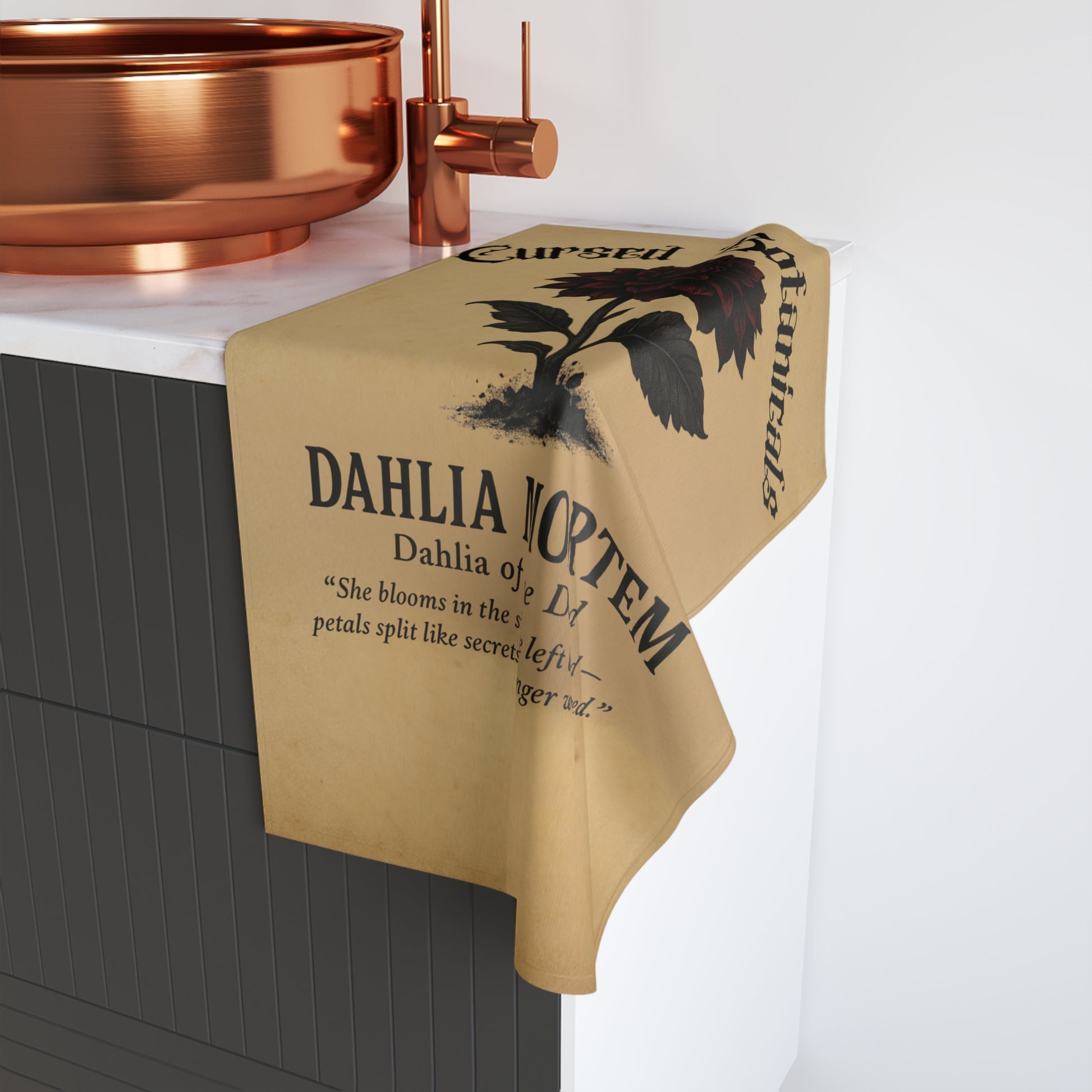 Hand Towel -Cursed Botanicals Collection- Dahlia Mortem Design, Gothic Home Decor, Floral Gift, Halloween Kitchen Towel, Unique Bath Accessory